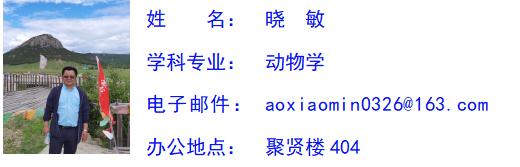 晓敏,男,蒙古族,中国民主同盟,农学博士,副教授,学术型硕士研究生指导教师,生物科学系副主任。研究方向为绿色饲料添加剂及反刍动物功能性饲料的开发与利用。近年主持省部级科研项目2项,地厅级科研项目4项,发表学术论文35余篇,其中SCI论文15篇;实用新型专利2项;出版教材1部,工具书1部。承担本科生《人体组织学与解剖学》、《人体组织学与解剖学实验》、《人体及动物生理学》、《人体及动物生理学实验》、《动物解剖生理学》、《动物解剖生理学实验》、《中员工物学实验教学研究》等课程的教学工作及教育实习指导工作;承担硕士研究生《动物实验技术与实践》等课程的教学工作。