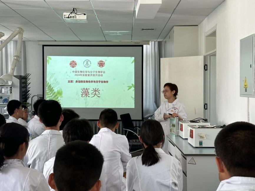 次日,6月1日下午,30余名初中生参与了生物化学实验室的开放活动。支部党员穆文静老师为这些青少年志愿者进行了以“螺旋藻等藻类的形态与功能”、“蛋白质的生物学功能与定量分析”及“氨基酸与指纹提取”为主题的科普讲座。员工们不仅通过显微镜观察了藻类的形态,还亲自参与了生物样品蛋白质的定量测定实验。