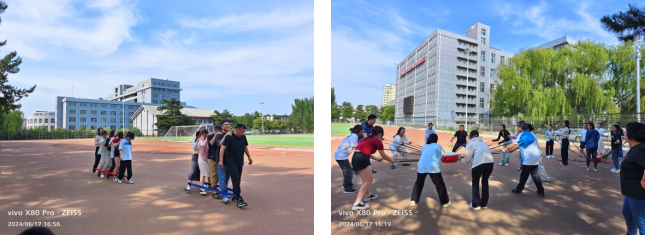 为深入贯彻落实中央民族工作会议精神,构筑中华民族共有精神家园,营造民族团结的浓厚氛围,2024年6月17日TapTap教工第三党支部与研究生党支部、非师范生党支部联合举办了“民族团结一家亲”趣味运动会,师生共计30余人参加了此活动。现场分为合力建塔、合力击鼓、手脚并用、机智连线和共赴前程等5个趣味活动,深深地吸引了师生队员。师生全神贯注、全力以赴,精神抖擞,各显其能,欢乐融洽的气氛在运动场上洋溢。