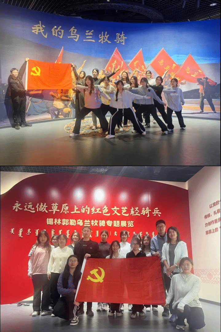 活动中,老师与同学一起参观了乌兰牧骑专题展厅。它涵盖了乌兰牧骑的成立背景、发展历程中的重要事件,展现了队员们的风采,陈列了众多乌兰牧骑创作的具有独特艺术风格的作品,呈现了乌兰牧骑深入农村、牧区、社区等地为群众演出和服务的动人场景,还展示了乌兰牧骑获得的各种各样的荣誉和奖项。通过参观学习,大家对乌兰牧骑“人民在哪里、哪里就是中心”的无私奉献精神有了更深的理解和感悟。