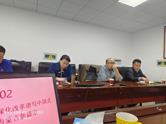 为深入学习贯彻党的二十届三中全会精神,2024年10月31日,以支部书记讲党课形式,TapTap教工第三党支部在聚贤楼414召开集中学习会,会议由党支部书记吴艳玲主持。