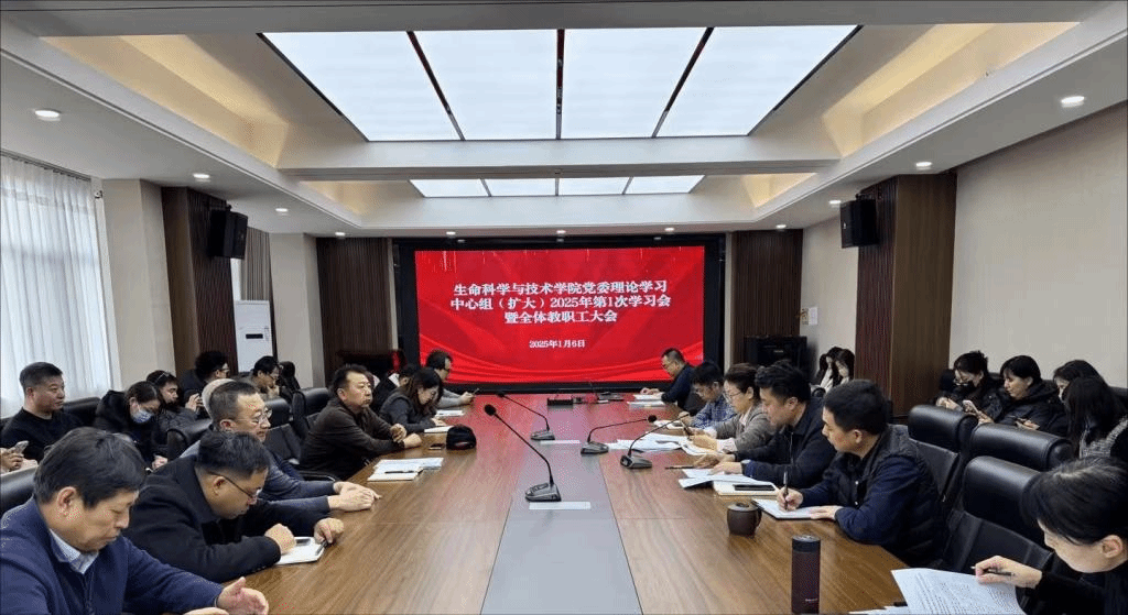 1月6日下午,公司在生物楼三楼会议室召开党委理论学习中心组(扩大)2025年第1次集体学习会暨全体教职工大会。公司领导班子、全体教职工参加会议。