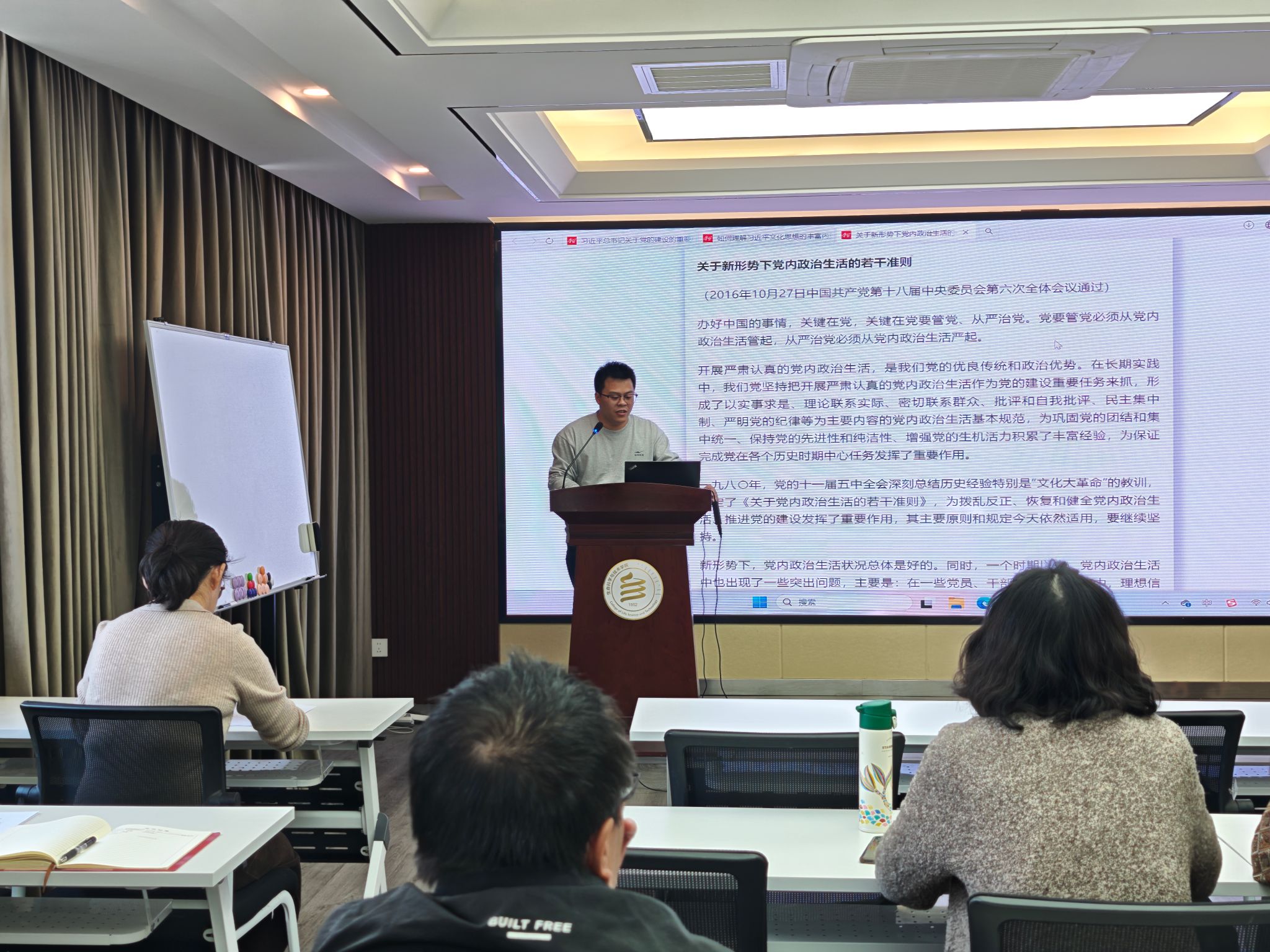 3月12日,教工第一党支部召开2024年度组织生活会前集体学习会,通过学习习近平新时代中国特色社会主义思想、党的二十届三中全会精神、《关于新形势下党内政治生活的若干准则》等内容,进一步统一思想、深化认识,打牢开好支部组织生活会的思想基础。