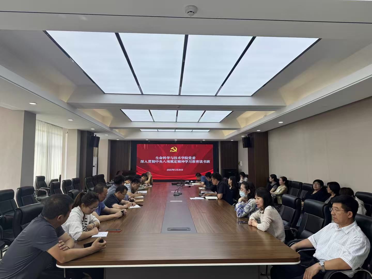 为深入贯彻中央八项规定精神学习教育,进一步增强党员教师的纪律意识和作风意识,5月29日上午,公司党委在生物楼三楼会议室召开深入贯彻中央八项规定精神学习教育读书班集体学习会,组织全体党员教师深入学习《党的十八大以来深入贯彻中央八项规定精神的成效和经验》、《八项规定改变中国》。