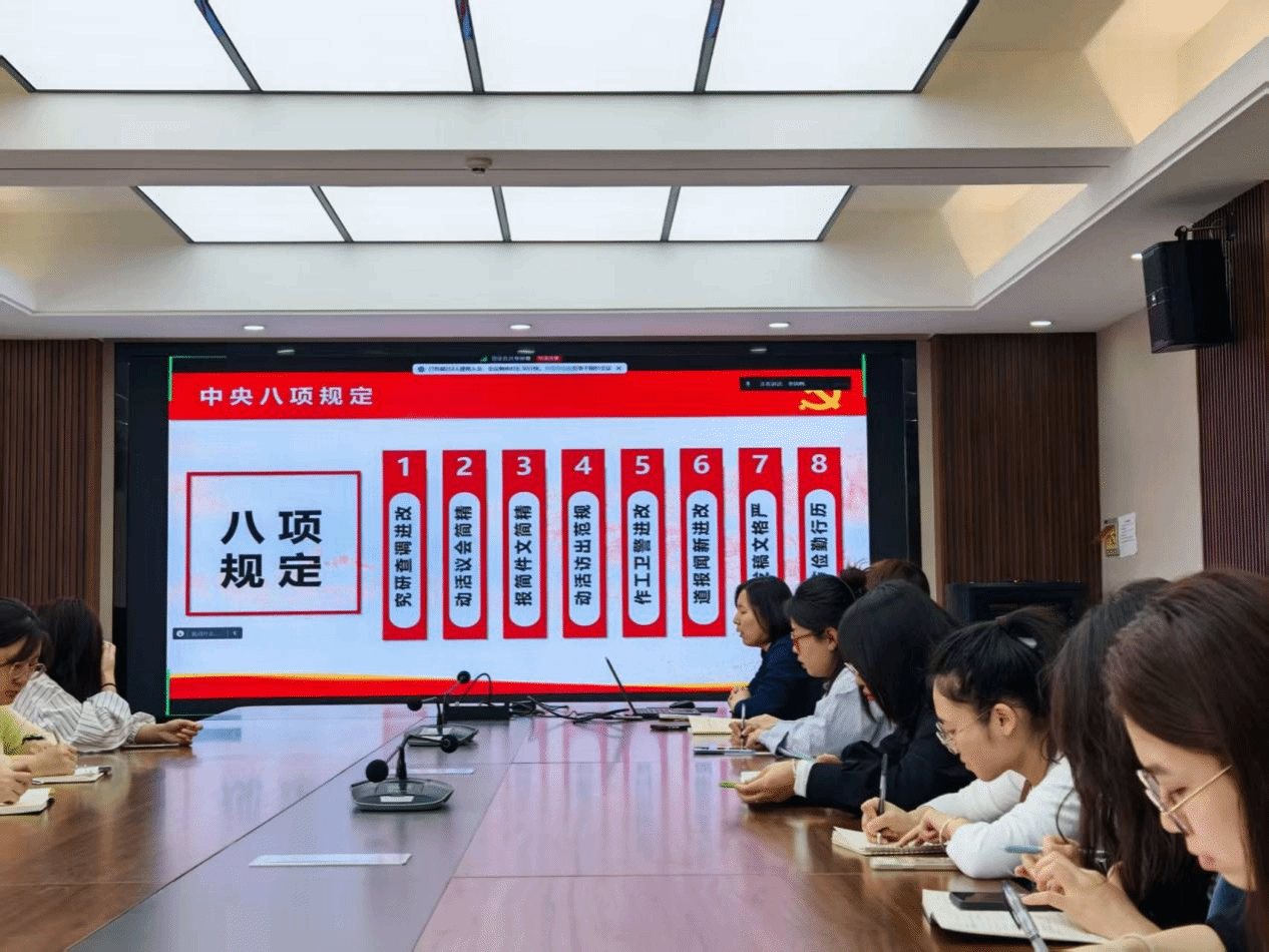 为深入贯彻中央八项规定精神学习教育,强化党员纪律意识和作风建设,公司研究生党支部于4月17日在生物楼三楼会议室举办了深入贯彻中央八项规定精神学习教育主题党日学习活动,支部全体党员参加了主题党日学习。活动以“理论学习+实践研讨”相结合的形式开展。首先,支部书记默原老师带领全体党员逐条研读《中央八项规定实施细则》,带领大家回顾了中央八项规定的出台背景与重要意义,结合《习近平关于加强党的作风建设论述摘编》进行专题辅导,重点解读改进调查研究、精简会议文件、规范公务接待等核心要求,强调“铁规矩、硬杠杠”的纪律意识。随后,支部全体党员集中观看警示教育片,通过以案说法深化对“四风”问题危害的认识。