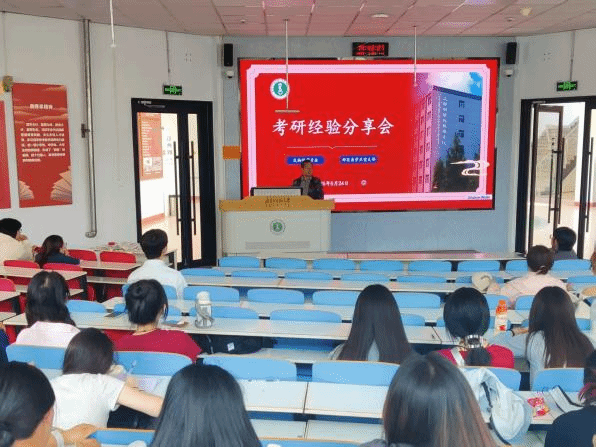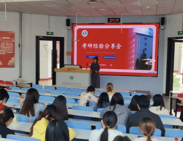 首先生物科学系主任姜凯老师和公司教务办负责人白晓霞老师为现场同学带来分享。姜凯老师提醒同学们做好心理准备,避免唯公司论,制定合理目标,根据自己的兴趣爱好,职业规划等做好考研准备;白晓霞老师建议同学们从当下规划大学四年,珍惜时光,为考研高质量就业早做准备。