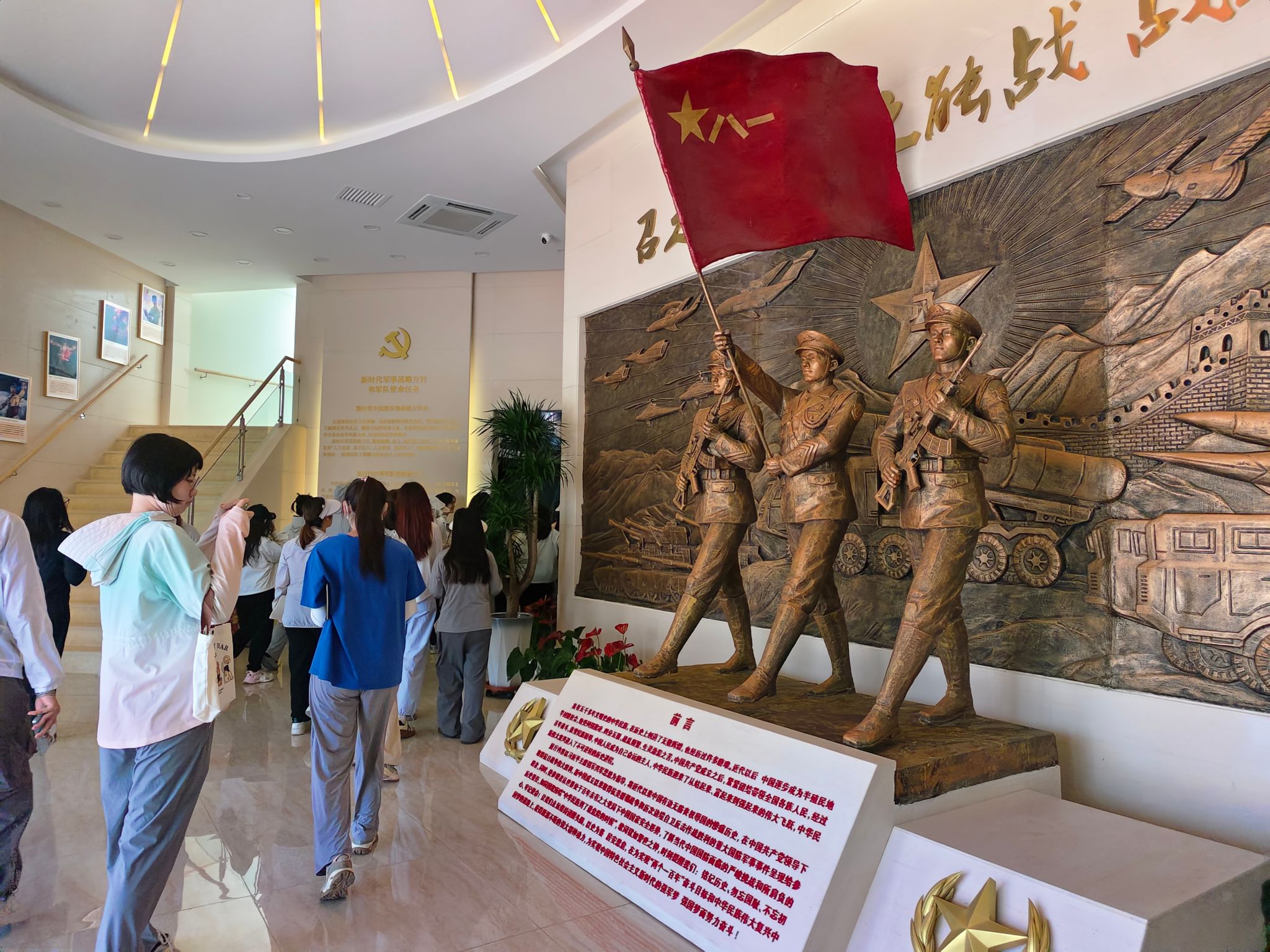 其中,在准能集团的实习成为融合专业认知与思政教育的典型场景。在准能集团黑岱沟煤矿,师生们既惊叹于国家矿山公园的生态蜕变——昔日矿坑如今已是生机盎然的生物多样性公园,由此深刻感悟到“绿水青山就是金山银山”的实践伟力;又在老一辈矿工的奋斗故事与新时代生态治理创新实践的交相辉映中,于学习矿山修复技术的同时,体悟到产业转型背后的责任担当与精神传承。此外,师生们在参观国防教育馆与党史馆中接受了深刻的精神洗礼。国防教育馆内,从近代国防的屈辱记忆到现代国防的科技崛起,从兵器装备的迭代升级到国防建设者的奉献故事,让大家真切体会到“国无防不立”的深刻内涵;党史馆里,一幅幅历史图片、一件件珍贵实物串联起党领导人民从站起来、富起来到强起来的壮阔历程,尤其是煤炭行业在党的领导下支撑国家工业化进程的峥嵘岁月,更让大家对“党的领导是发展的根本保证”有了鲜活而具体的认知。