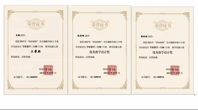 本次大赛共有北京师范大学、华东师范大学、东北师范大学等72所教育硕士培养高校的316名选手提交作品参加初赛,通过专家评审,有57所高校的158名选手入围决赛。经评审一等奖16名,二等奖32名,三等奖48名,优秀教学设计奖62名。公司TapTap三位同学经过院赛评选和初赛选拔,在指导教师乌云高娃老师的带领下一同前往山东烟台参加决赛。2022级学科教学(生物)专业研究生肖敏获大赛三等奖,张秀娜、秦盼盼获大赛优秀教学设计奖。