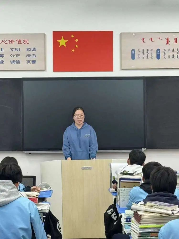 实习期间趣事很多,其中比较有意义的是3.6参与了旗教育事业发展中心教研员对常规教学的听课与评课,收获颇深,教研员强调了课堂中"以员工为主体",增强课堂活跃度,提高员工参与度。还有件有意义的事是3.8由我给初一八班的同学们召开“向雷锋学习”的主题班会,很开心能向员工们宣扬雷锋精神,期待我接下来的实习生活也能收获多多!