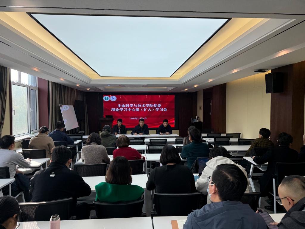 11月14日下午,公司在生物楼三楼智慧教室召开党委理论学习中心组(扩大)2024年第10次集体学习会,全体教职工参加学习会。党委书记苏小波主持会议。