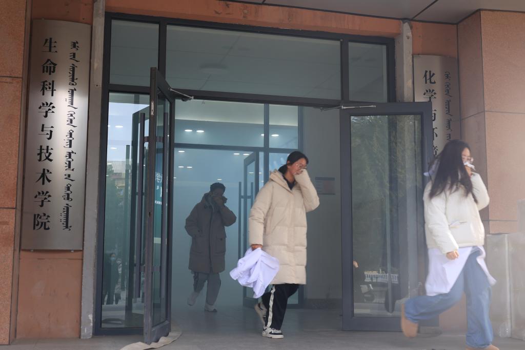 演练活动安排了实验室突发火灾疏散逃生、应急灭火两个环节。随着实验室警报声响起,滚滚浓烟冒出,师生们迅速进入紧急状态,按照预先制定的疏散路线,有条不紊地进行撤离。在疏散过程中,老师们沉着冷静地指挥,同学们迅速用湿毛巾捂住口鼻,弯腰低姿前行,整个疏散过程紧张有序,仅用了短短几分钟时间,所有师生都成功撤离到了安全区域。在应急灭火环节,在消防员的指导下,参与师生了解掌握了灭火器的种类、适用范围及操作步骤,还进行了灭火器灭火实操训练,掌握了初期火灾扑救要领。
