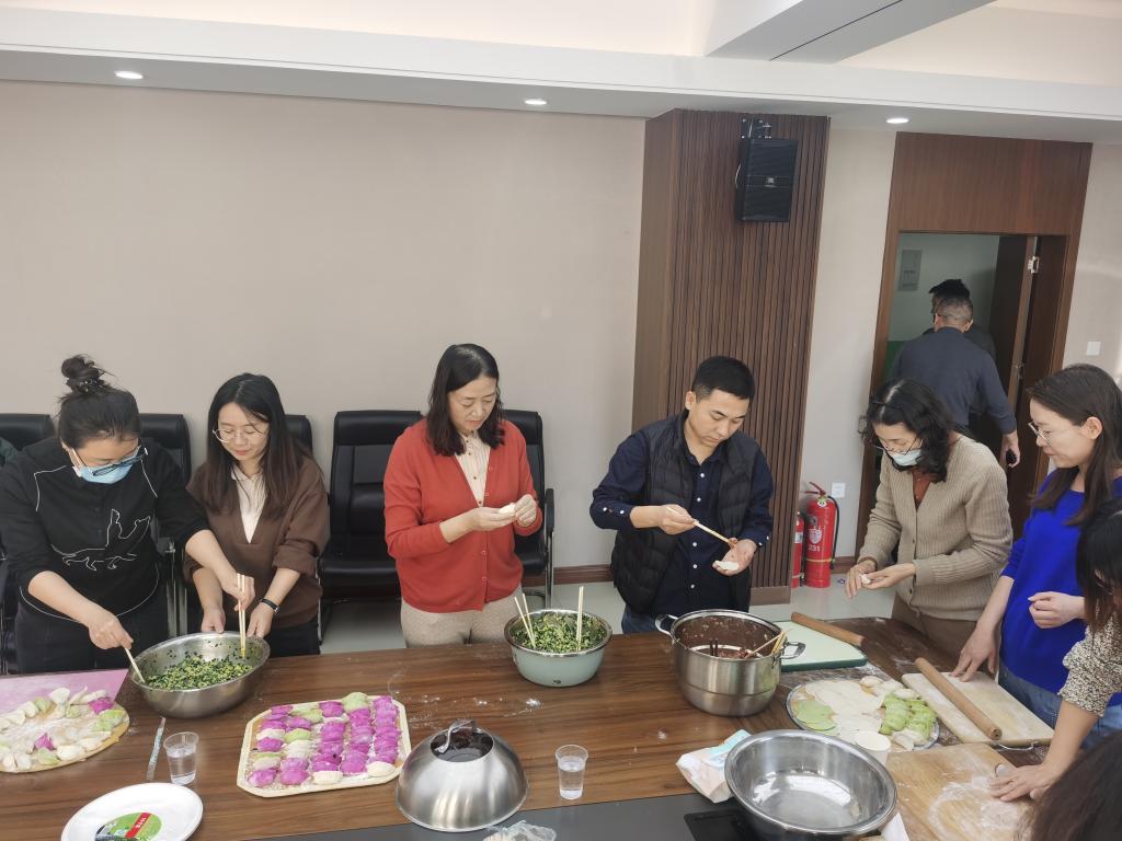 联欢会从热闹的包饺子环节拉开序幕。一大早大家分组协作,和面、擀皮、调馅、包饺子,各显身手。在欢声笑语中,彩色饺子承载着满满的节日气氛,热腾腾的饺子出锅后,全体教职工一边品尝着劳动成果,一边畅谈过去一年的点滴与收获。